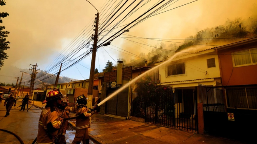 VOV.VN - Hôm qua (5/2), lính cứu hỏa ở miền trung Chile phải vật lộn để dập tắt các đám cháy rừng dữ dội, thiêu rụi toàn bộ khu vực lân cận. Tổng thống Gabriel Boric cảnh báo nước này đang đối mặt với một “thảm họa lớn” khi 123 người đã chết trong các đám cháy, trong đó riêng ngày 3/2 có 51 thiệt mạng.