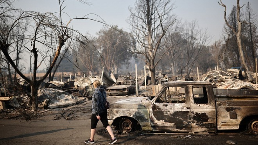 VOV.VN - Một đám cháy rừng ở phía Bắc bang California (Mỹ) đang đe dọa hàng nghìn căn nhà, sau khi gió mạnh khiến ngọn lửa lan nhanh. Đám cháy đã thiêu hủy các căn nhà trong một khu dân cư nhỏ và khiến ít nhất 3 người thiệt mạng.
