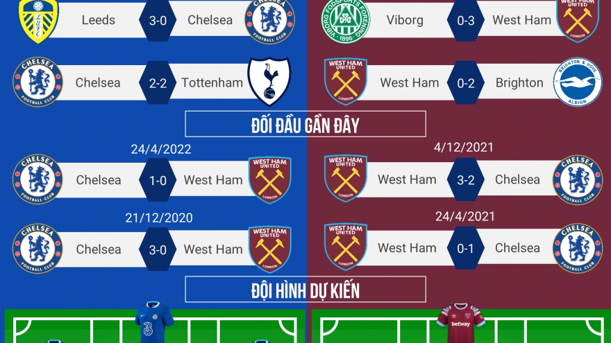 VOV.VN - Dự đoán tỷ số, đội hình xuất phát trận đấu giữa Chelsea và West Ham trong khuôn khổ vòng 6 Ngoại hạng Anh 2022/2023 diễn ra lúc 21h00 ngày 3/9 theo giờ Việt Nam.