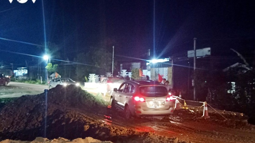 VOV.VN - Tối 19/8, đơn vị thi công điểm xói lở chia cắt giao thông tại km 350+410, quốc lộ 32 đã thông đường bước 1, đảm bảo các phương tiện đi lại được.