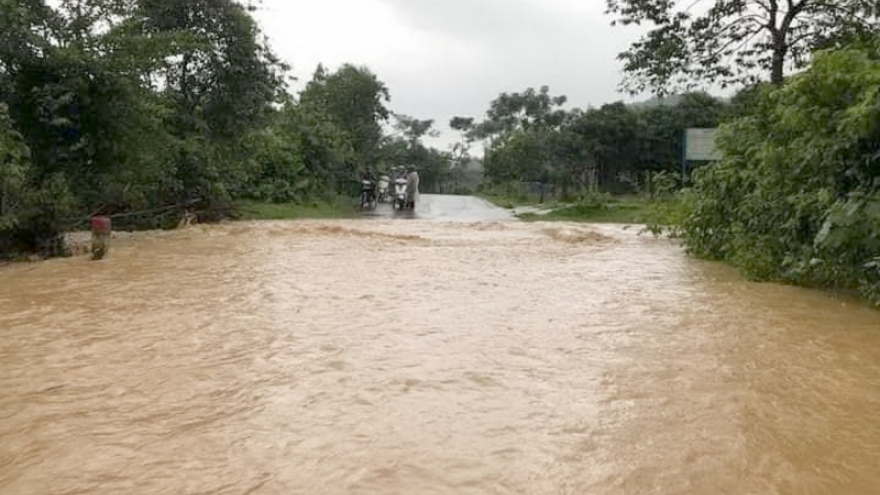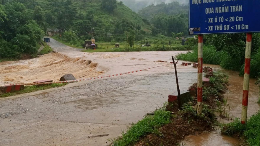 VOV.VN - Mưa lớn liên tục, nước từ thượng nguồn đổ về, tràn qua ngầm sông Trường, sông Nước Oa, huyện Bắc Trà My gây chia cắt giao thông trên Quốc lộ 40B.