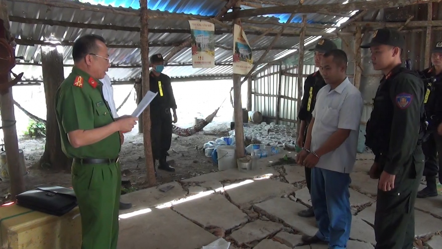 VOV.VN - Nguyễn Văn Em tự ý vào bao chiếm đất của người khác, dựng hàng rào và cất nhiều căn nhà tạm để canh giữ, đồng thời chặt cây và đập phá tài sản của chủ sở hữu.