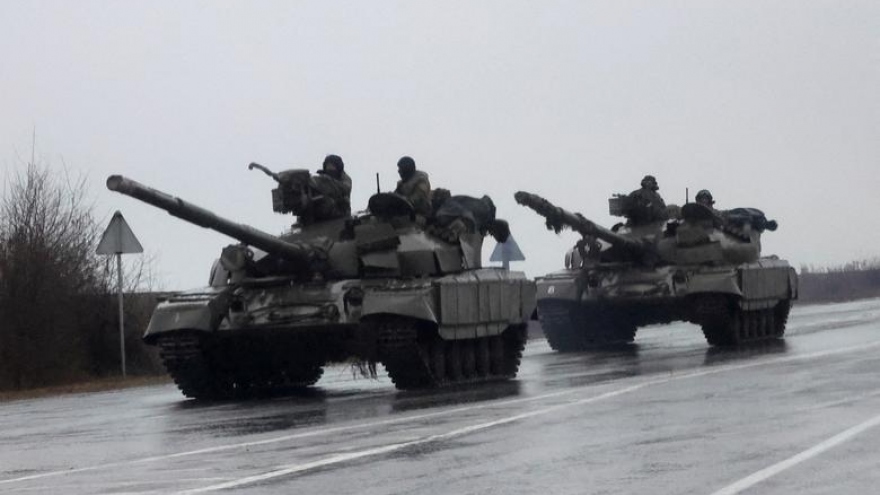VOV.VN - Quân đội Ukraine ngày 24/2 cho biết, 50 binh sĩ Nga đã thiệt mạng gần một thị trấn ở vùng Lugansk trong chiến dịch quân sự tại Ukraine. 4 chiếc xe tăng đã bị phá huỷ trên một tuyến đường gần thành phố Kharkov ở miền Đông Ukraine.