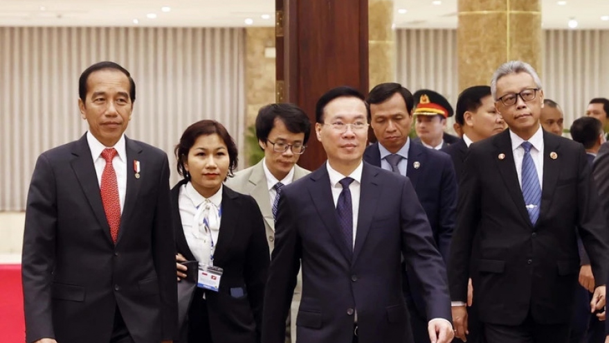 VOV.VN - Tối nay, 12/1, tại Hà Nội, Chủ tịch nước Võ Văn Thưởng chủ trì chiêu đãi trọng thể, chào mừng Tổng thống Joko Widodo dẫn đầu đoàn cấp cao Indonesia thăm cấp Nhà nước tới Việt Nam.