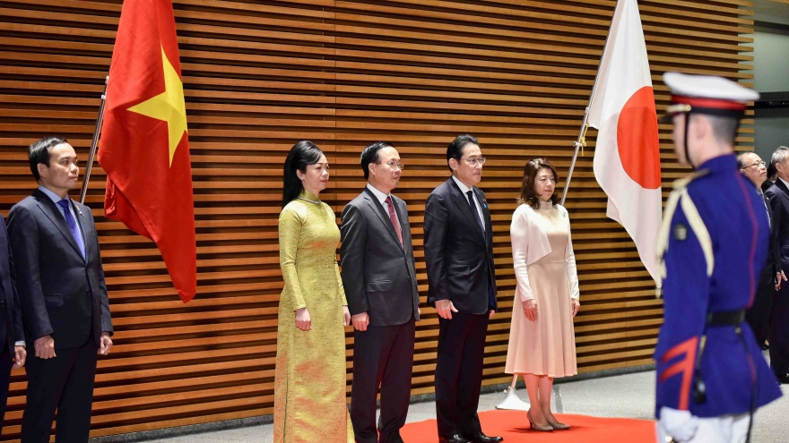 VOV.VN - Trong khuôn khổ chuyến thăm chính thức Nhật Bản, ngày 27/11/2023, tại Phủ Thủ tướng Nhật Bản, Chủ tịch nước Võ Văn Thưởng và Phu nhân đã dự lễ đón chính thức, hội đàm, phát biểu báo chí chung và dự chiêu đãi trọng thể của Thủ tướng Nhật Bản Kishida Fumio và Phu nhân.