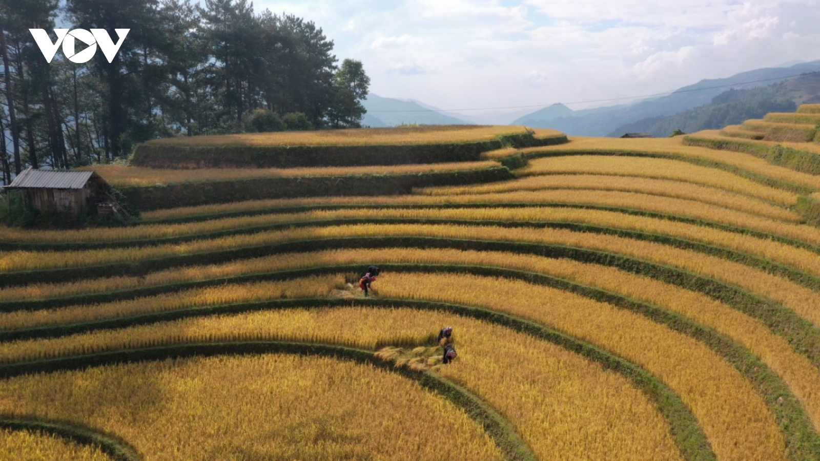 VOV.VN - Khoảng thời gian từ tháng 9 đến tháng 10 là lúc những thửa ruộng bậc thang Mù Cang Chải (Yên Bái) bắt đầu vào mùa gặt, tràn ngập sắc vàng rực rỡ của lúa chín.