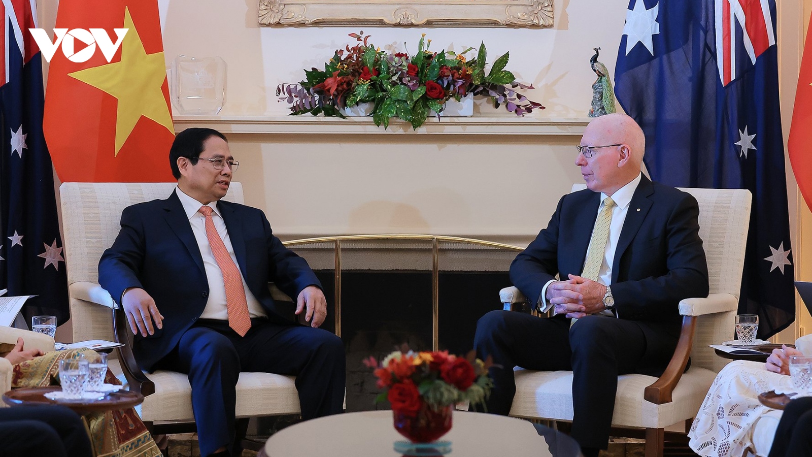 VOV.VN - Sáng ngày 7/3, tại Phủ Toàn quyền, Thủ đô Canberra, Thủ tướng Chính phủ Phạm Minh Chính cùng Phu nhân đã hội kiến Toàn quyền Australia David Hurley và Phu nhân Linda Hurley nhân chuyến thăm chính thức Australia.