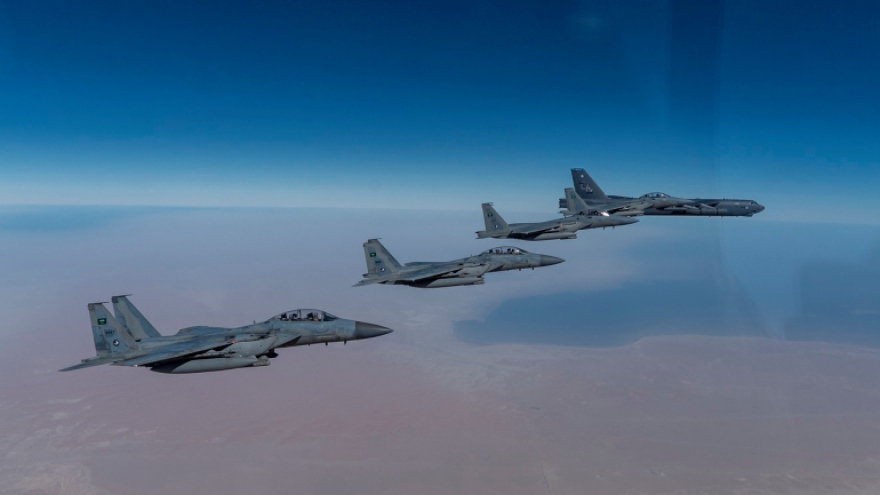 VOV.VN - Đây là chuyến bay “phô diễn sức mạnh” đầu tiên trên bầu trời Trung Đông của máy bay ném bom chiến lược B-52 kể từ khi Tổng thống Joe Biden nhậm chức.