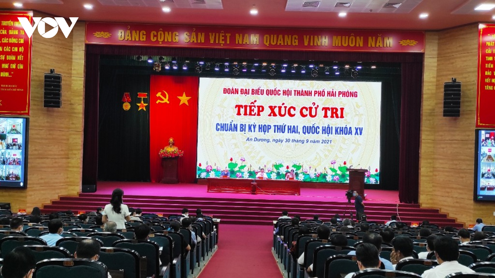 VOV.VN - Hôm nay (30/9), Đoàn đại biểu Quốc hội TP Hải Phòng tiếp xúc cử tri chuẩn bị kỳ họp thứ 2 Quốc hội khóa XV. Cử tri TP Hải Phòng đã kiến nghị nhiều ý kiến liên quan đến phát triển kinh tế-xã hội đất nước và thành phố; mong muốn Quốc hội sớm thông qua cơ chế đặc thù cho TP Hải Phòng.
