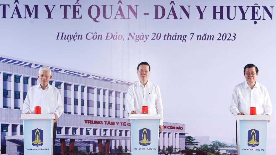 VOV.VN - Chủ tịch nước Võ Văn Thưởng dự lễ khởi công xây dựng công trình Trung tâm Y tế Quân – Dân Y huyện Côn Đảo và khánh thành công trình Cảng tàu khách Côn Đảo.