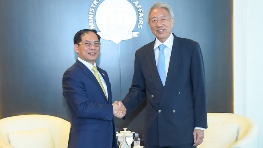 VOV.VN - Ngày 18/7, trong khuôn khổ chuyến thăm chính thức Singapore, Bộ trưởng Ngoại giao Bùi Thanh Sơn đã hội kiến với Bộ trưởng cao cấp kiêm Bộ trưởng điều phối an ninh quốc gia Singapore Tiêu Chí Hiền.