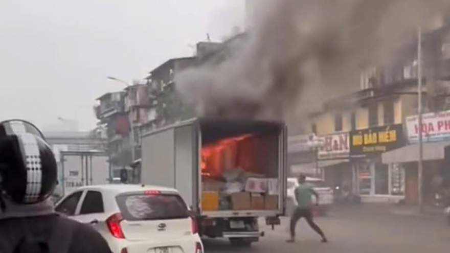 VOV.VN - Theo thông tin từ Đội CSGT đường bộ số 7 (Phòng CSGT Hà Nội), vào khoảng 10h5 ngày 5/3, một xe tải chở theo hàng bất ngờ bốc cháy tại đường Khuất Duy Tiến (đoạn đối diện số 104C3 Khuất Duy Tiến, hướng Nguyễn Xiển - Khuất Duy Tiến).