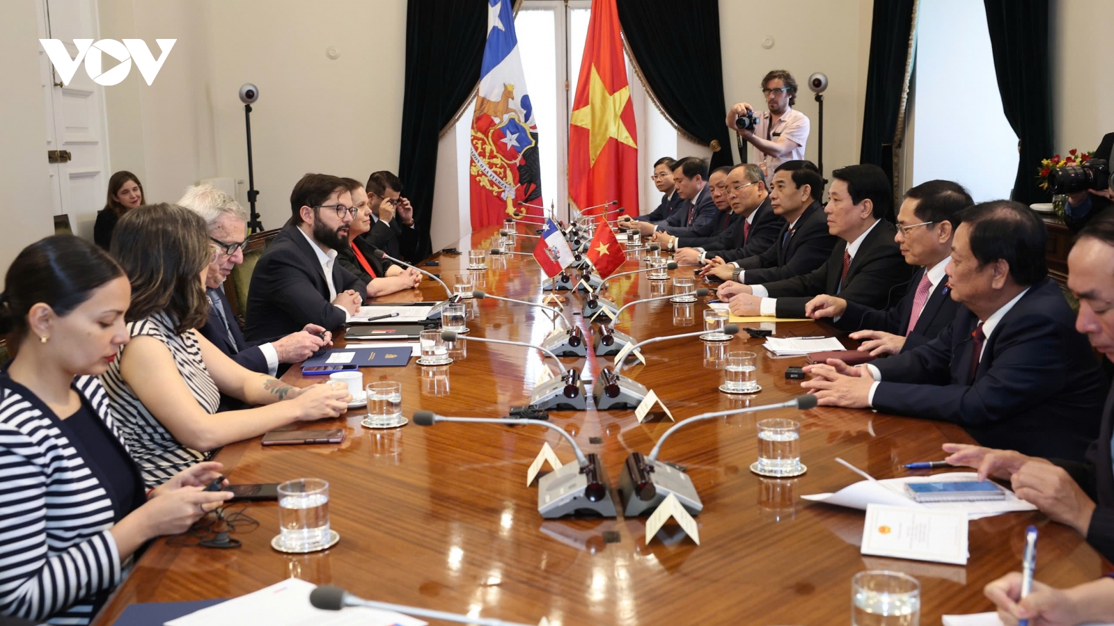 VOV.VN - Trong khuôn khổ chuyến thăm chính thức tới Cộng hoà Peru, chiều 12/11 (giờ địa phương), Chủ tịch nước Lương Cường và Đoàn đại biểu cấp cao Việt Nam tới thăm, làm việc với Công ty Viettel Peru (Bitel).
