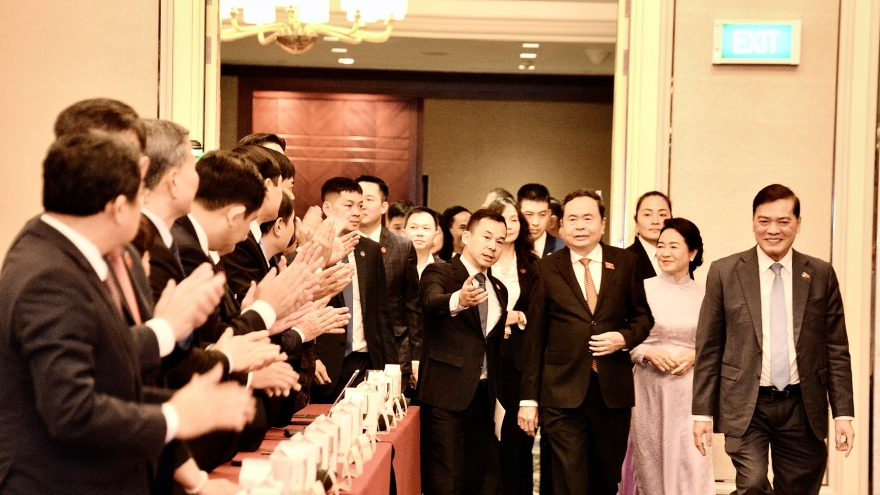 VOV.VN - Trong khuôn khổ chuyến thăm chính thức Cộng hòa Singapore, ngay sau khi đến Thủ đô Singapore, Chủ tịch Quốc hội Trần Thanh Mẫn và phu nhân, cùng Đoàn đại biểu cấp cao Quốc hội nước ta đã gặp gỡ cán bộ, nhân viên các cơ quan đại diện và đại diện cộng đồng người Việt Nam tại Singapore.
