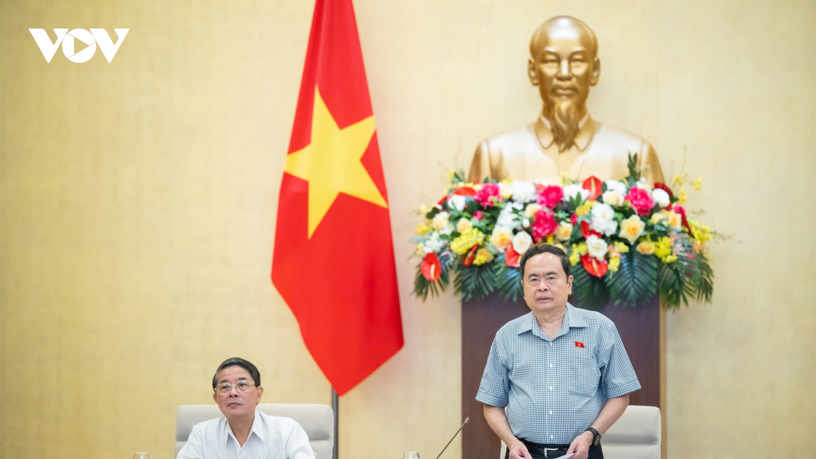 VOV.VN - Nhân kỷ niệm 79 năm ngày Quốc khánh nước Cộng hòa xã hội chủ nghĩa Việt Nam, tối 27/8, tại Nhà hát Lớn, Hà Nội, Chủ tịch Quốc hội Trần Thanh Mẫn đã dự Chương trình nghệ thuật đặc biệt “Nắng Ba Đình” do Báo Đại biểu Nhân dân chủ trì tổ chức.
