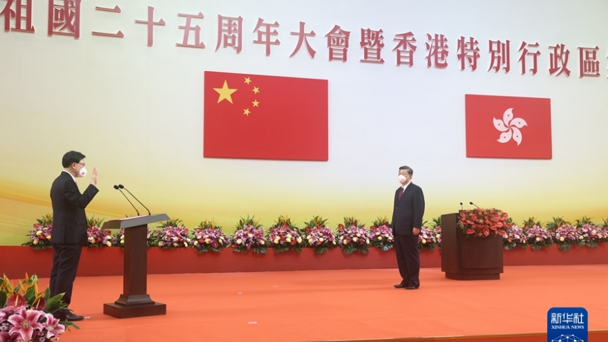 VOV.VN - Phát biểu tại lễ kỷ niệm 25 năm Hong Kong trở về Trung Quốc đại lục tổ chức hôm nay (1/7), Chủ tịch Trung Quốc Tập Cận Bình đã khẳng định sự thành công và tầm quan trọng của việc duy trì lâu dài chính sách “một quốc gia, hai chế độ” tại vùng lãnh thổ này.
