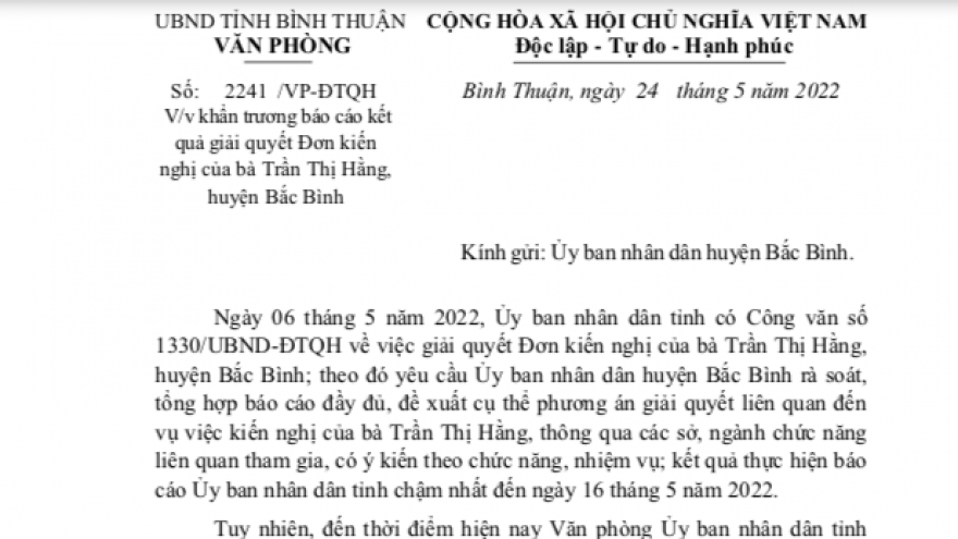 VOV.VN - Chủ tịch UBND tỉnh Bình Thuận yêu cầu UBND huyện Bắc Bình giải quyết kiến nghị của người dân khi mua đất của chính quyền, nộp tiền vào ngân sách 17 năm vẫn chưa được giao đất. Tuy nhiên, lãnh đạo UBND huyện Bắc Bình đang “phớt lờ"?
