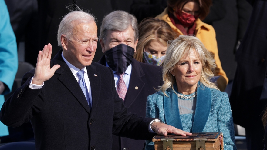 VOV.VN - Ông Joe Biden đã làm lễ tuyên thệ nhậm chức tại cánh Tây điện Capitol, thủ đô Washington vào trưa 20/1 (giờ Mỹ), chính thức trở thành Tổng thống thứ 46 của nước Mỹ.