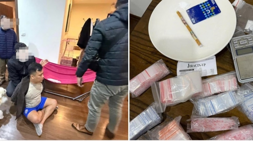 VOV.VN - Tiến hành khám xét khẩn cấp chỗ ở của Phạm Đức Minh tại một căn hộ chung cư cao cấp ở Xuân La, Tây Hồ, lực lượng chức năng thu giữ 41 viên nén ma tuý tổng hợp, 14 túi nilon chứa ma tuý, một cân điện tử...
