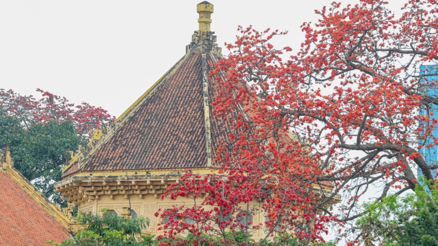 VOV.VN - Hoa gạo thường gắn liền với khung cảnh những miền quê êm đềm. Thế nhưng giữa nội thành Hà Nội, người ta vẫn có thể bắt gặp những cây gạo như thắp lửa rực rỡ đất trời.