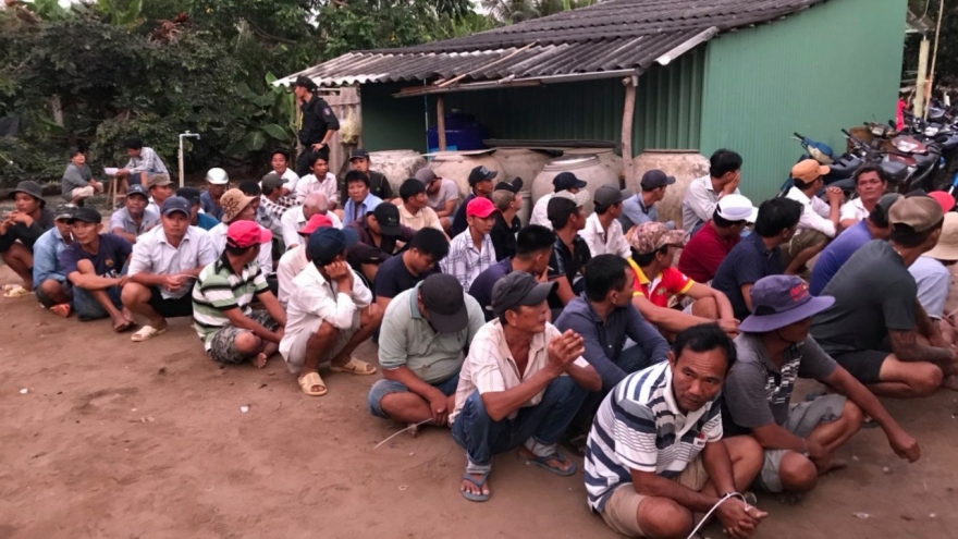 VOV.VN - Công an huyện Chợ Gạo, tỉnh Tiền Giang vừa triệt phá một tụ điểm đánh bạc với hình thức đánh bài ăn tiền, tại một khu nhà hoang giữa đêm khuya.