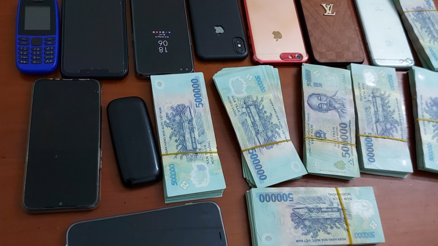 VOV.VN - Tại hiện trường, công an thu giữ 12 con gà trống đá, 15 cặp cựa sắt, 1 cân đồng hồ, 70 cuộn băng keo, 5 bộ bầu cua, 1 tấm kính nhử gà, 16 điện thoại di động, 2 xe mô tô và gần 20 triệu đồng.
