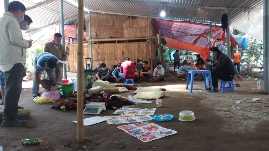 VOV.VN - Trưa 10/2, Đội cảnh sát trật tự, Phòng cảnh sát quản lý hành chính về trật tự xã hội, Công an tỉnh Vĩnh Long đã bắt một nhóm người tổ chức đá gà, ăn thua bằng tiền ở xã Mỹ Thạnh Trung, huyện Tam Bình.