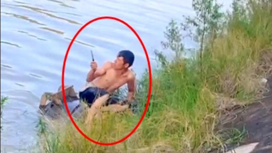 VOV.VN - Chiều 13/9, lực lượng cứu hộ cứu nạn Công an thành phố Thuận An, tỉnh Bình Dương đã tiếp cận, thuyết phục một người đàn ông trong trạng thái không tỉnh táo, cầm dao cố thủ dưới kênh.