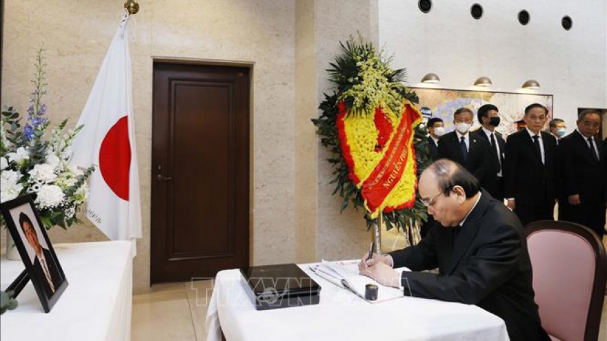 VOV.VN - Lãnh đạo cấp cao Việt Nam bày tỏ lòng tiếc thương vô hạn và gửi lời chia buồn sâu sắc nhất của Đảng, Nhà nước và Nhân dân Việt Nam tới Đảng Dân chủ Tự do, Chính phủ, nhân dân Nhật Bản và gia quyến Ngài cố Thủ tướng Abe Shinzo.