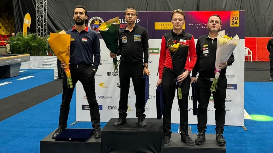 VOV.VN - Trần Quyết Chiến giành chiến thắng 50-44 trước Sidhom Sameh (Ai Cập) ở chung kết carom 3 băng để có lần thứ 3 trong sự nghiệp vô địch World Cup billiards.