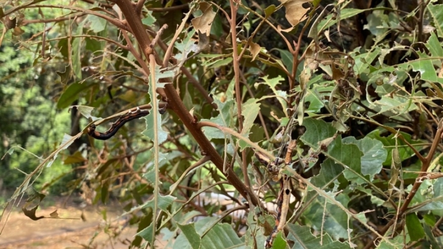 VOV.VN - Rừng Chõi nguyên sinh hàng trăm năm tuổi trên 10 ha thuộc địa bàn thôn Nam Đồng, xã Đồng Tiến, huyện đảo Cô Tô (tỉnh Quảng Ninh) đang bị tấn công bởi 1 loài sâu lạ.