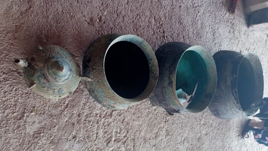 VOV.VN - Khi san đất làm vườn, một gia đình tại huyện Qùy Hợp phát hiện chiếc ấm quai rồng, nhiều chiếc nồi bằng đồng nghi là những cổ vật rất có giá trị.