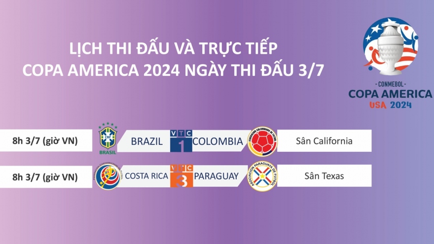 VOV.VN - Lịch thi đấu và trực tiếp Copa America 2024 hôm nay 25/6, Brazil sẽ đối đầu với Costa Rica ở lượt trận ra quân, trong khi Colombia gặp Paraguay.