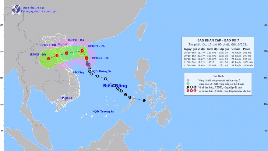 VOV.VN - Bão đang di chuyển chủ yếu theo hướng Tây, mỗi giờ đi được khoảng 15km. Đến 10 giờ ngày 10/10, vị trí tâm bão cách Hải Phòng khoảng 100km. Sức gió mạnh nhất vùng gần tâm bão mạnh cấp 8 (60-75km/giờ), giật cấp 10.
