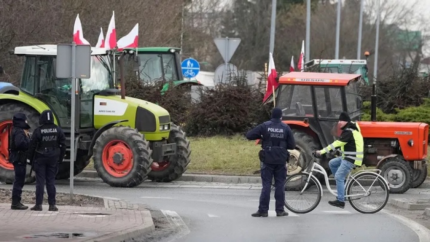 VOV.VN - Một số lượng lớn nông dân Ba Lan tiếp tục phong tỏa khoảng 100 con đường dẫn tới biên giới Ukraine vào sáng 20/2 để phản đối việc nhập khẩu sản phẩm nông nghiệp ồ ạt, thiếu kiểm soát, đồng thời yêu cầu cần thay đổi chính sách nông nghiệp của EU.