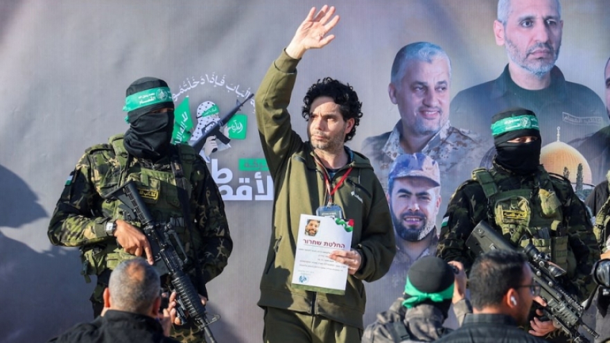 VOV.VN - Sáng nay (8/2), lực lượng Hamas đã phóng thích thêm 3 con tin trong đợt trao đổi con tin/tù nhân thứ 5 giữa nhóm này và Israel theo nội dung thỏa thuận ngừng bắn giai đoạn 1 có hiệu lực từ ngày 19/1 tại dải Gaza.