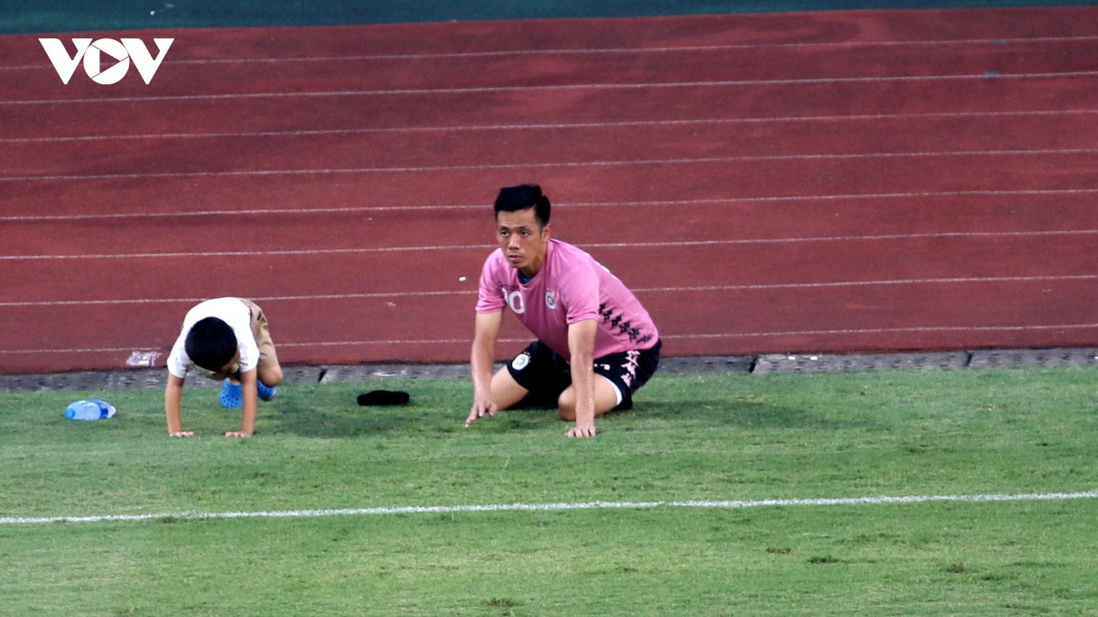 VOV.VN - Văn Quyết đã thực hiện những động tác hồi phục sau khi thi đấu trận gặp Viettel cùng với ... cậu con trai của mình, tạo nên khoảnh khắc hết sức đáng yêu bên lề trận đấu.