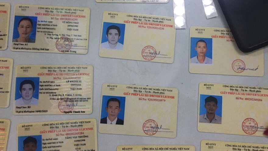 VOV.VN - Trương Công Minh khai mua phôi của một người ngoại tỉnh không rõ danh tính rồi làm giả bằng lái xe các loại. Mỗi bằng lái xe giả Minh bán với giá giao động từ 700.000 đồng đến 1,5 triệu đồng.