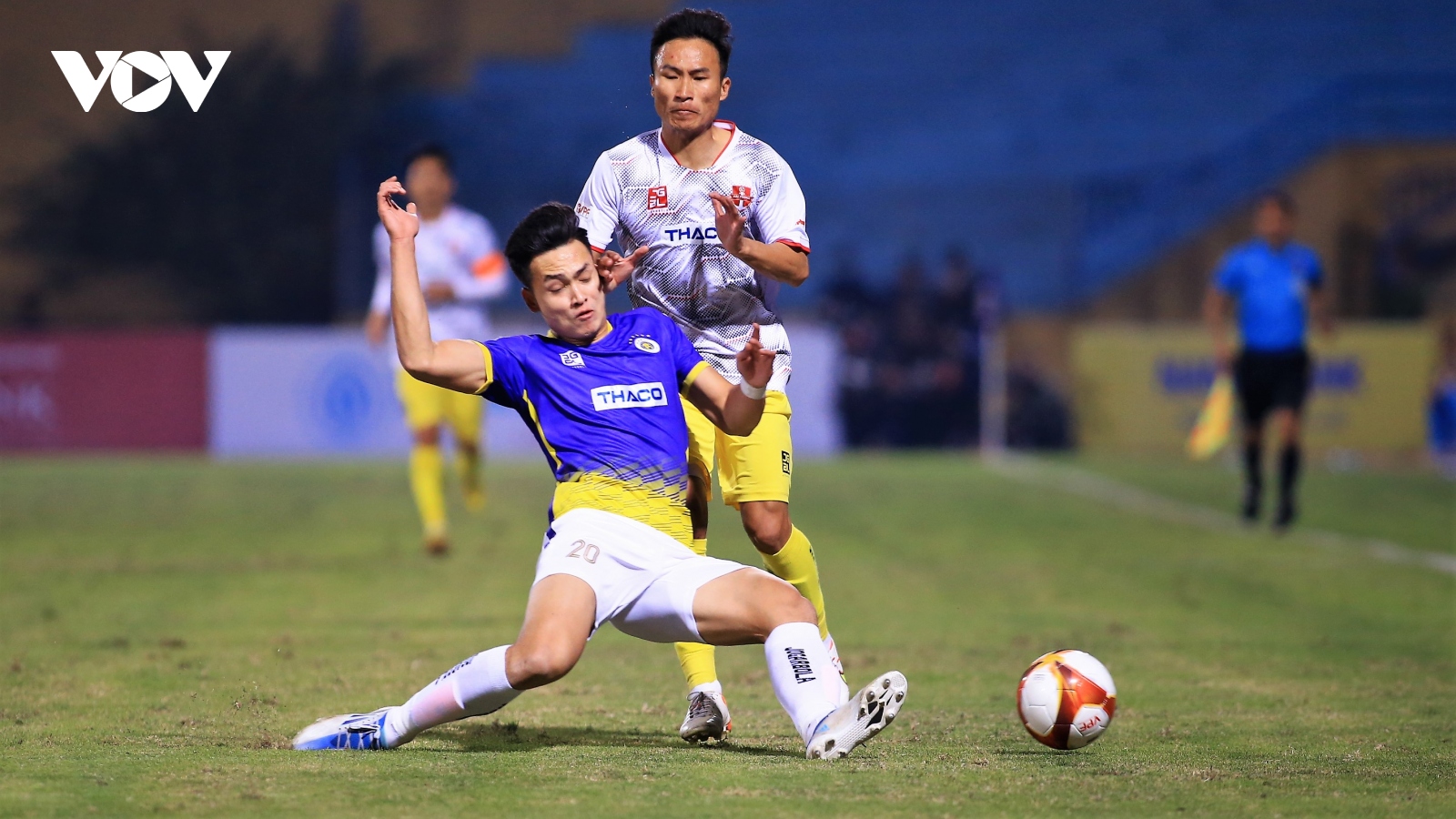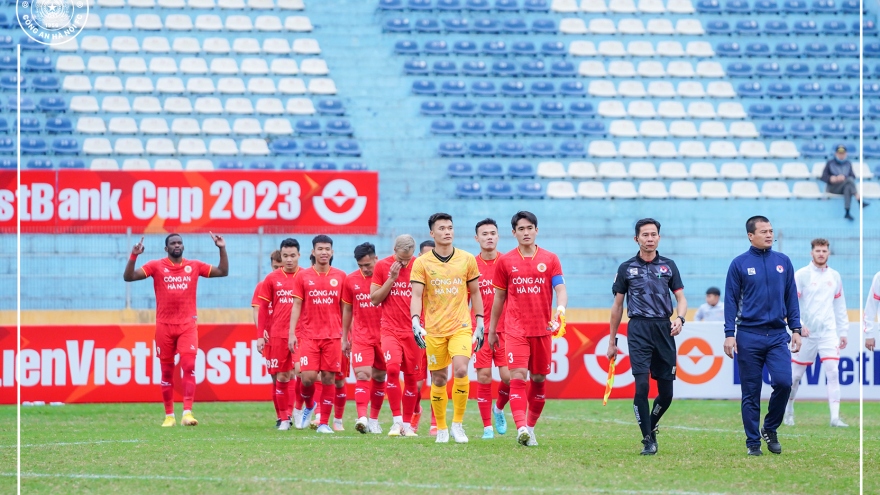 VOV.VN - Công an Hà Nội giành chiến thắng 5-0 trước Bình Định trong ngày bộ 3 ngoại binh đã tỏa sáng rực rỡ khi Rodrigues mở tỷ số ở phút 18, trước khi Jhon Cley nhân đôi cách biệt trên chấm phạt đền ở phút 39 và Tsoumou lập hat-trick (69', 81', 82').
