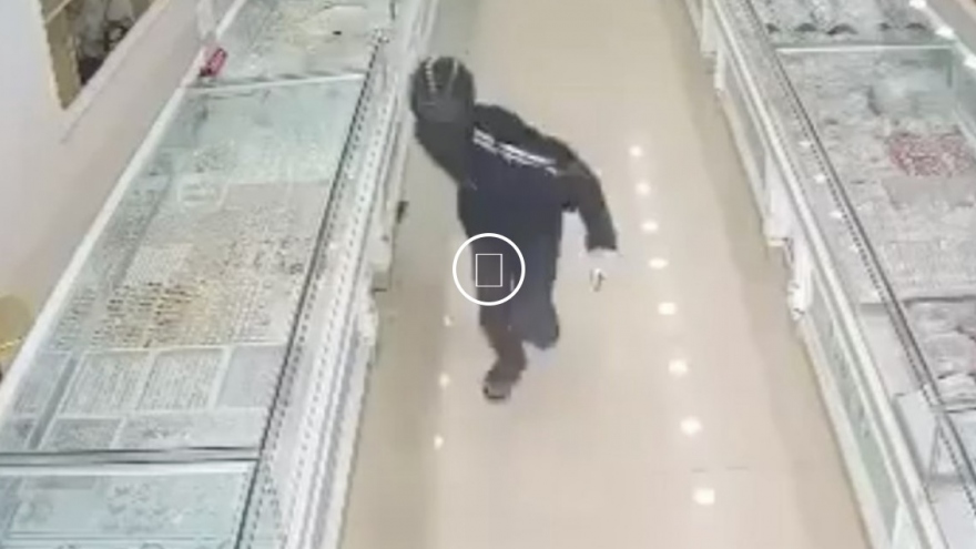 VOV.VN - Hình ảnh camera ghi lại cảnh nam thanh niên đi vào tiệm vàng, đập vỡ kính quầy trưng bày lấy vàng trước mặt nhân viên rồi tẩu thoát. Hiện đối tượng đang bị lực lượng công an truy bắt.