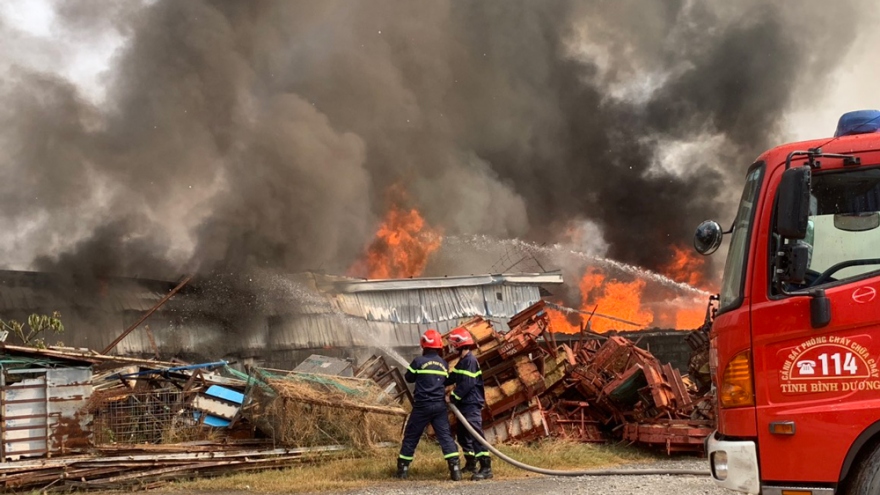 VOV.VN - Chiều nay (15/7), lực lượng phòng cháy chữa cháy Công an tỉnh Bình Dương đang khẩn trương dập tắt đám cháy tại Công ty TNHH Đồ gỗ Ly Long (khu phố Long Bình, phường Khánh Bình, TP. Tân Uyên).