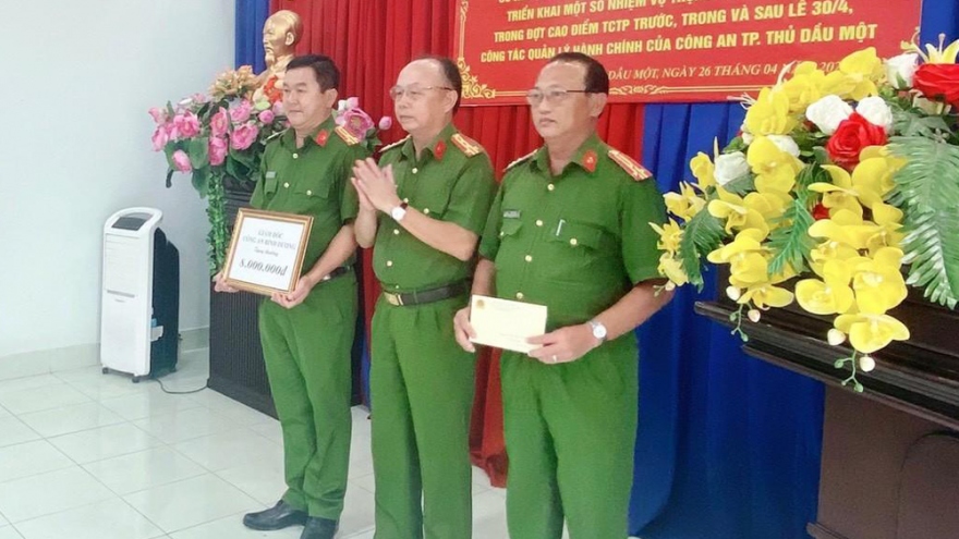 VOV.VN - Chiều nay (26/4), Công an tỉnh Bình Dương trao thưởng nóng cho Công an thành phố Thủ Dầu Một khi phát hiện, làm rõ vụ tàng trữ trái phép chất ma túy với khối lượng hơn 2,1 kg.