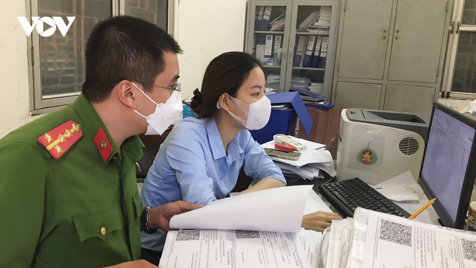 VOV.VN - Cán bộ UBND, Công an phường, xã đang tăng cường làm việc, cố gắng cấp giấy đi đường cho đúng đối tượng là cá nhân, người lao động làm việc trong các cơ quan, tổ chức, doanh nghiệp thiết yếu.