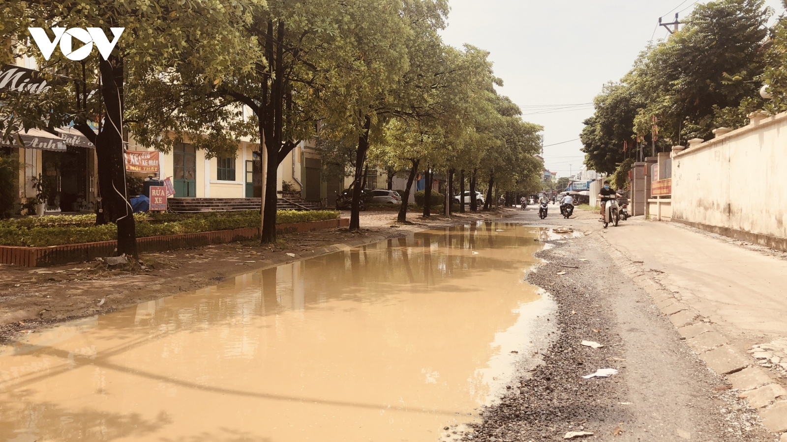 VOV.VN - Nắng bụi, mưa ngập là thực trạng xuống cấp hư hỏng của đoạn đường Kim Chung chỉ hơn 100 m ngang qua trụ sở công an xã và khu nhà ở công nhân, tại thôn Bầu, xã Kim Chung, huyện Đông Anh, Hà Nội.