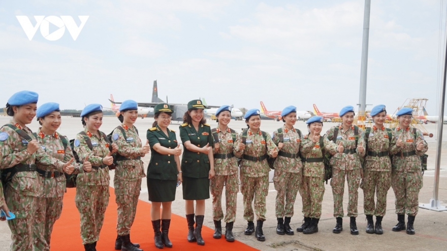 VOV.VN - Sáng 27/4, lực lượng Gìn giữ hòa bình Việt Nam làm lễ xuất quân tại sân bay Nội Bài (Hà Nội), thực hiện nhiệm vụ của Liên Hợp Quốc tại phái bộ UNISFA.
