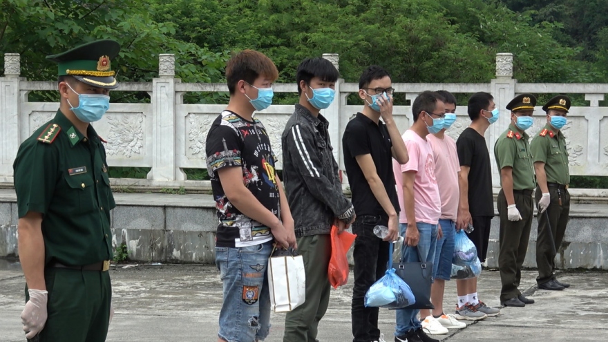 VOV.VN - Phòng Quản lý xuất nhập cảnh Công an tỉnh Cao Bằng vừa phối hợp với Đồn Biên phòng Trà Lĩnh tổ chức trao trả cho cơ quan chức năng nước bạn 6 đối tượng người Trung quốc nhập cảnh trái vào Việt Nam.