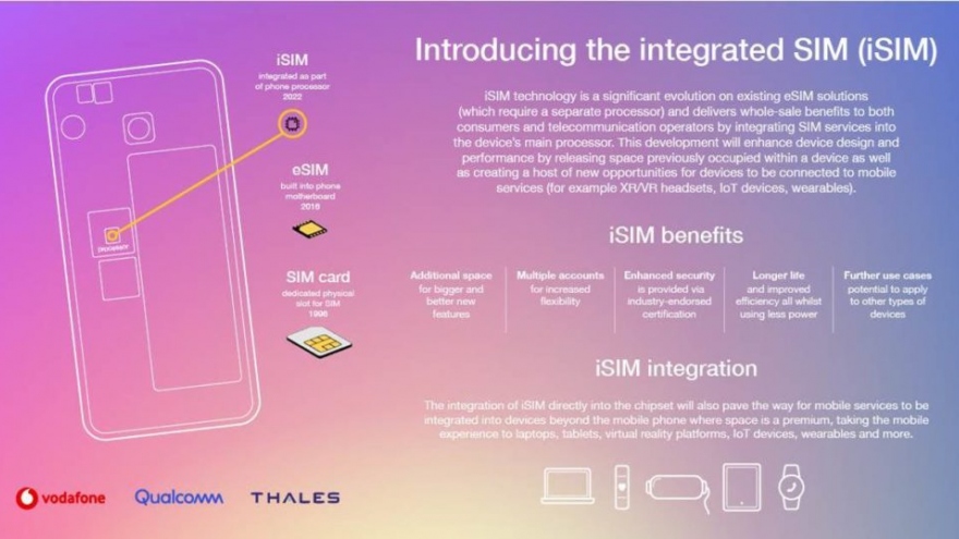 VOV.VN - Qualcomm, Vodafone và Thales đã cùng nhau trình diễn smartphone đầu tiên thế giới có công nghệ iSIM (SIM tích hợp), cho phép gắn thẻ SIM vào chip xử lý của thiết bị nhằm loại bỏ nhu cầu về một khe cắm chuyên dụng.