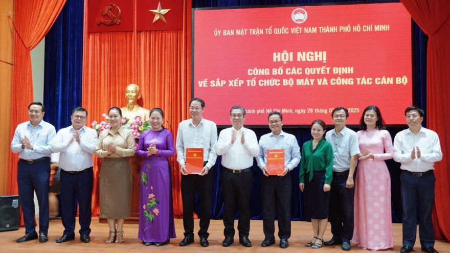 VOV.VN - Chiều 28/2, Uỷ ban MTTQ Việt Nam TP.HCM tổ chức công bố quyết định sắp xếp tổ chức bộ máy và công tác cán bộ nhằm thực hiện các quy định của Đảng, chủ trương của Trung ương, Thành ủy về tiếp tục đổi mới, sắp xếp tổ chức bộ máy của hệ thống chính trị tinh gọn, hoạt động hiệu lực, hiệu quả.