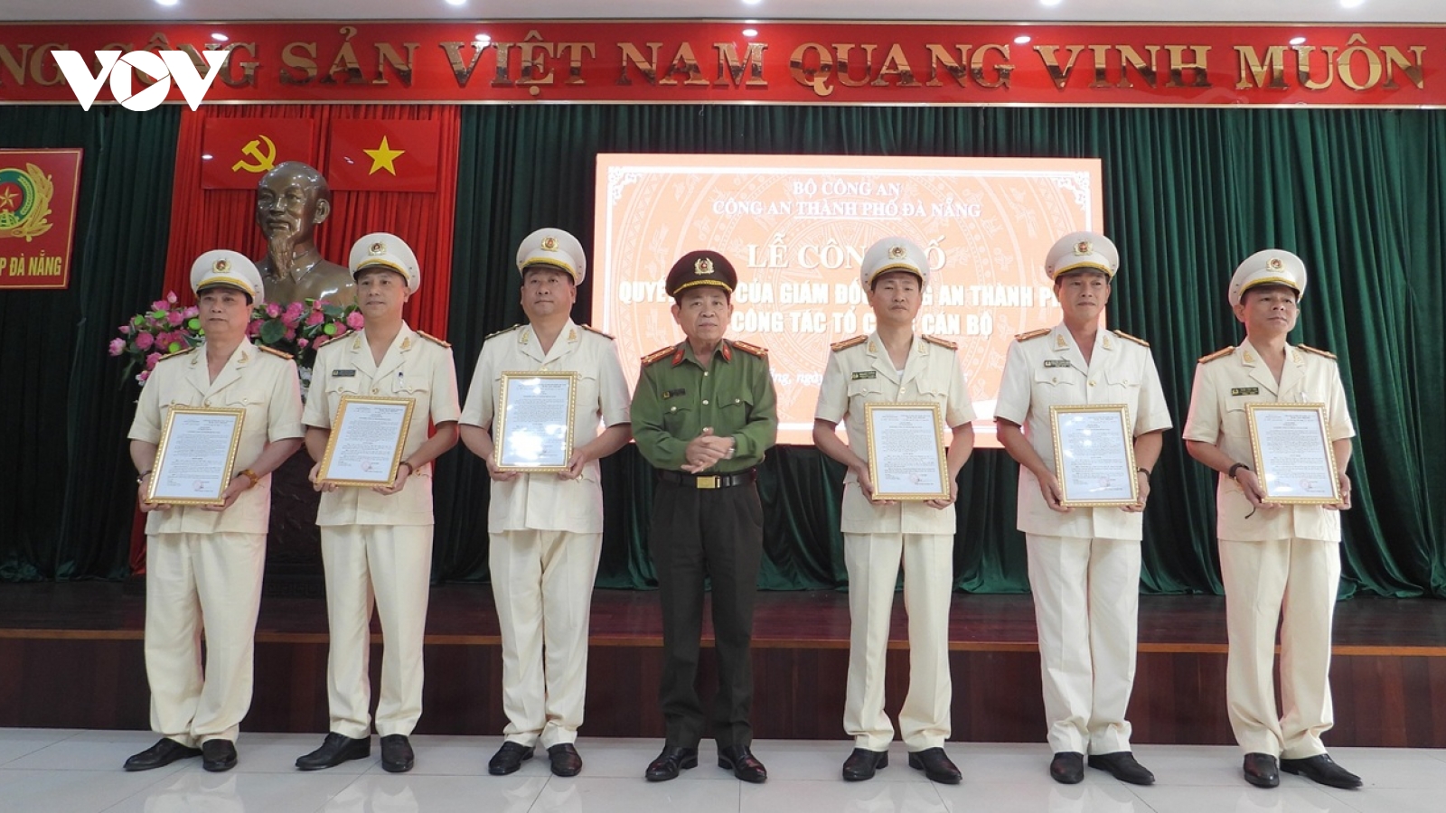 VOV.VN - Chiều 28/02, Đảng ủy, Giám đốc Công an TP Đà Nẵng tổ chức Lễ công bố quyết định của Bộ trưởng Bộ Công an về việc giải thể công an các quận, huyện; quyết định của Giám đốc Công an thành phố về nghỉ công tác hưởng chế độ hưu trí đối với các lãnh đạo công an các đơn vị, địa phương và điều động, bố trí, kiện toàn cán bộ lãnh đạo cấp phòng.