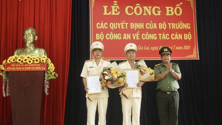Đại tá Trần Ngọc Sơn, Trưởng phòng An ninh Kinh tế và Thượng tá Dương Văn Long, Trưởng Công an huyện Ia Pa vừa được bổ nhiệm giữ chức PGĐ Công an tỉnh Gia Lai.